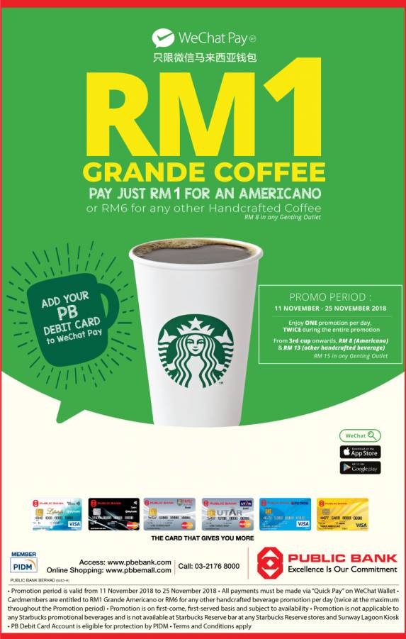 Public Bank Credit Card Promotion Enjoy Rm1 Starbucks Grande Americano With Wechat Pay