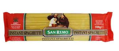 Daily essentials dry rations instant pasta instant spaghetti San Remo san remo pasta spaghetti. San Remo Instant Spaghetti No3 500g. View cart for details.