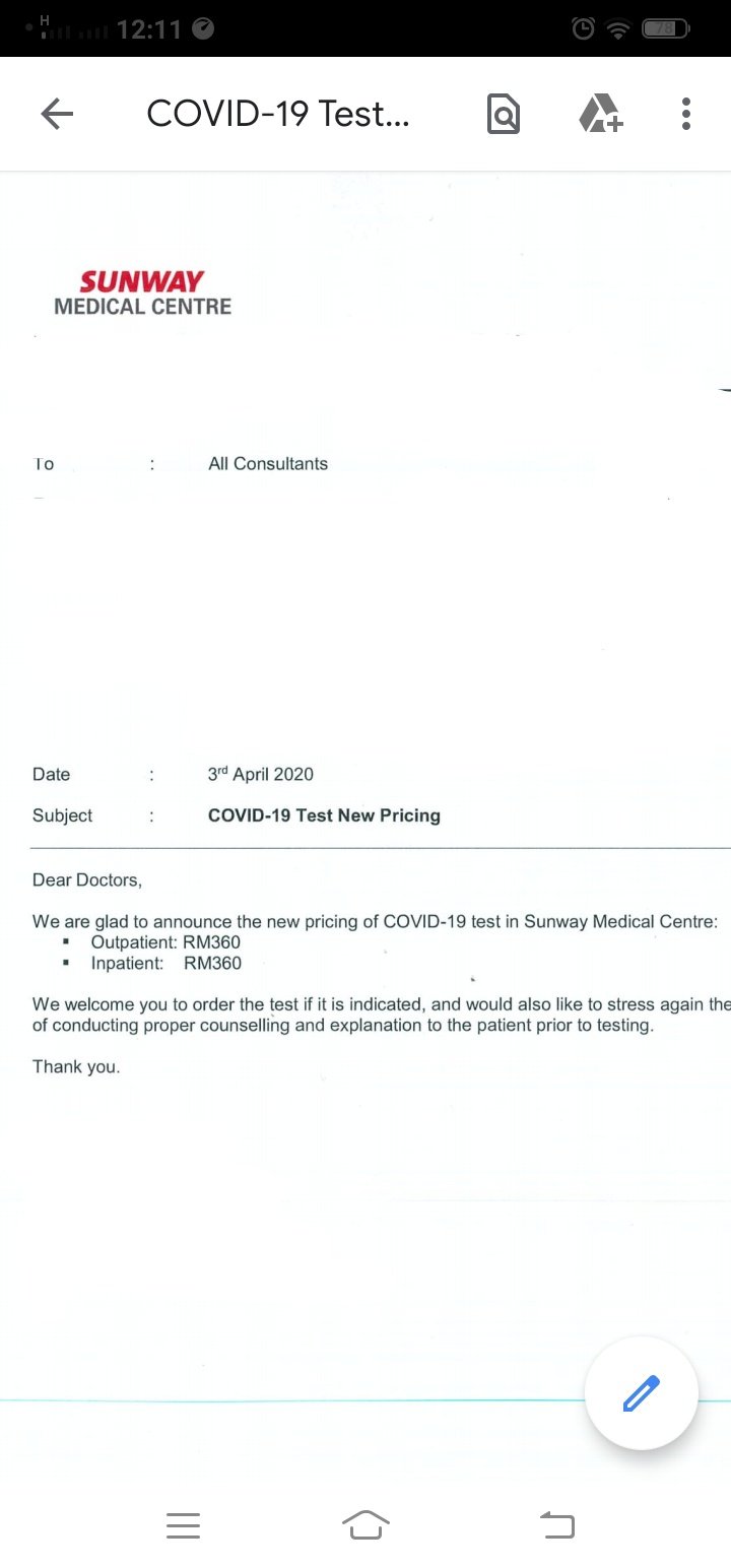 Dr Nurul Yaqeen On Twitter Hi Dato Just To Share Sunway Medical Centre Velocity Also Has Reduced The Price For Covid19 Pcr Test To Rm360 Effective Today Hope This Will Help To