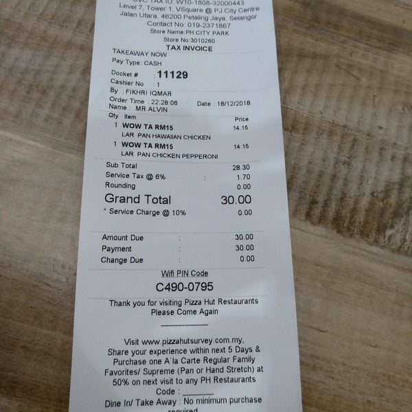Delivery operating hours vary depending on store location. Pekerja yg sangat cuaiiii. You may also contact Pizza Hut and find out about our catering services for your next big event.