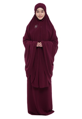 Siti Khadijah Siti Khadijah Telekung Chiffon Swarovski In Burgundy 2021 Buy Siti Khadijah Online Zalora Hong Kong
