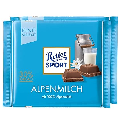 Amazon Com Ritter Sport Alpine Milk Chocolate Bar Candy Original German Chocolate 100g 3 52oz Pack Of 2 Grocery Gourmet Food