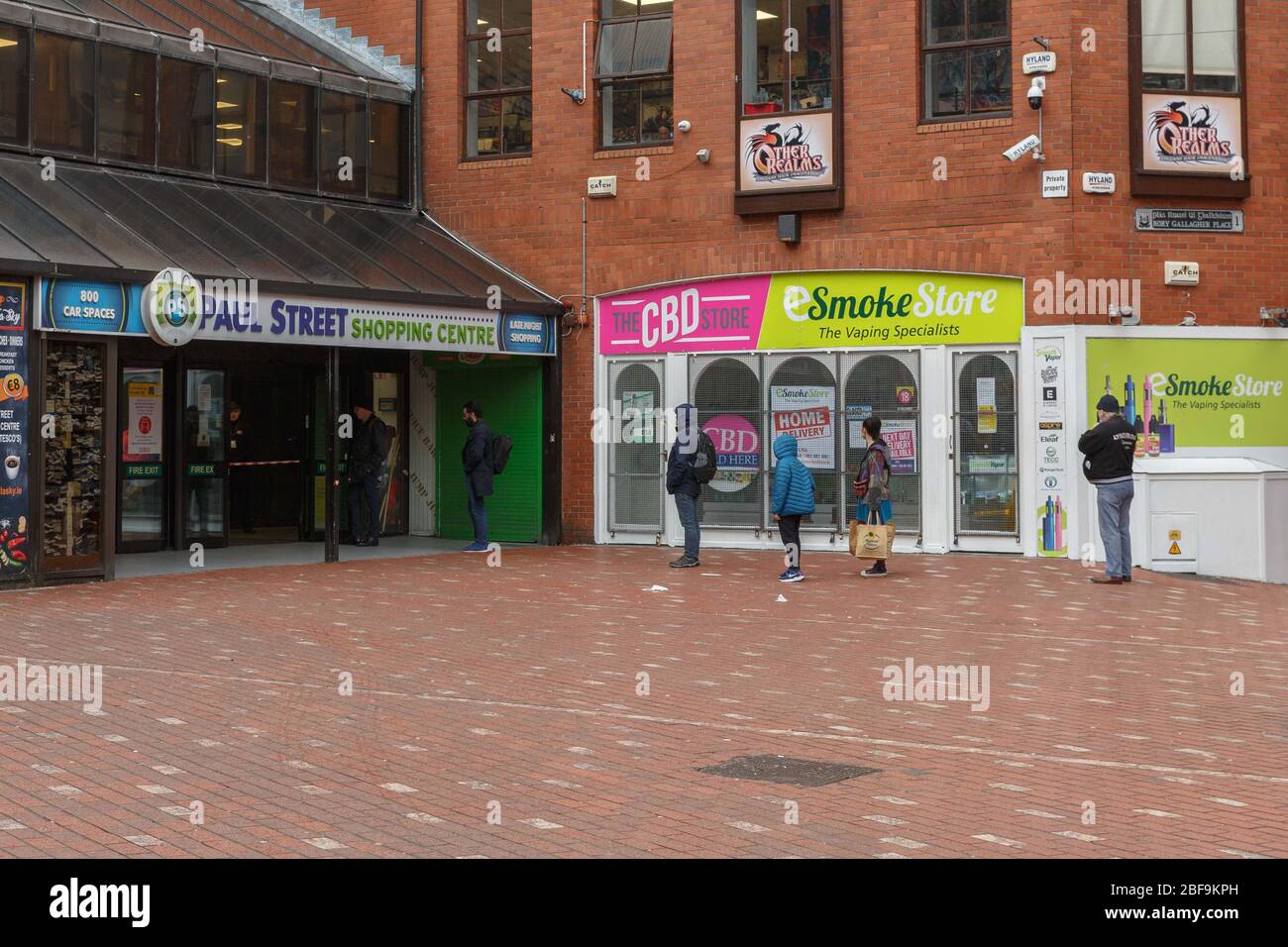 Cork Ireland 17th Apr 2020 Heavy Rain In Cork City Queue For Tesco Paul Street An Empty Cork City Today From Both The Lockdown And Heavy Rain Forecast Throughout The Day Anybody