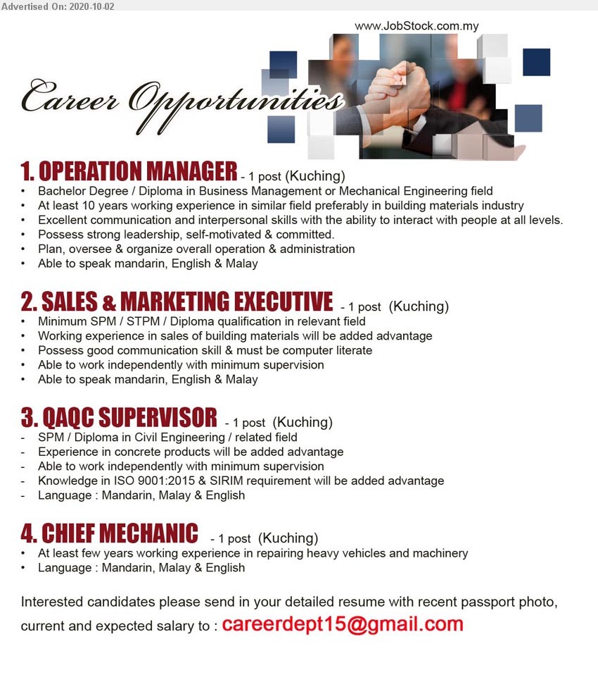 1-30 of 2073 jobs. JOB DESCRIPTION SALES AND MARKETING EXECUTIVE Membuat Menjawab mesej panggilan pertanyaan customer di Whatsapp Facebook dan Instagram syarikat. We are looking for enthusiastic energetic and creative young talented team member to join us to move toward the same vision to inspire people.