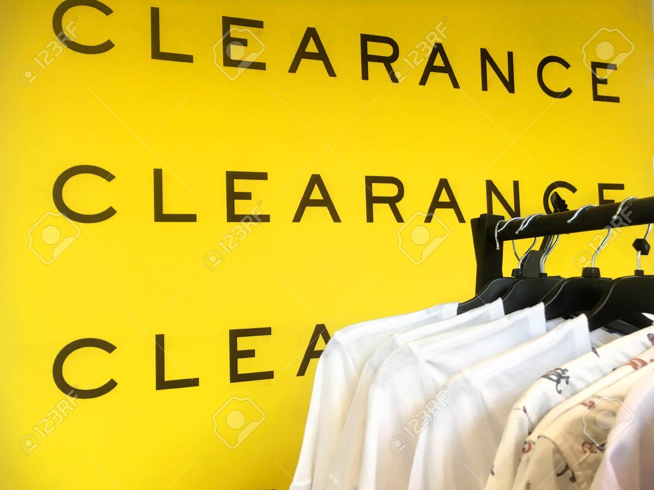 Sign Indicates Clearance Sale Discounts On Clothing In Retail Clothing Bargain Store Stock Photo Alamy