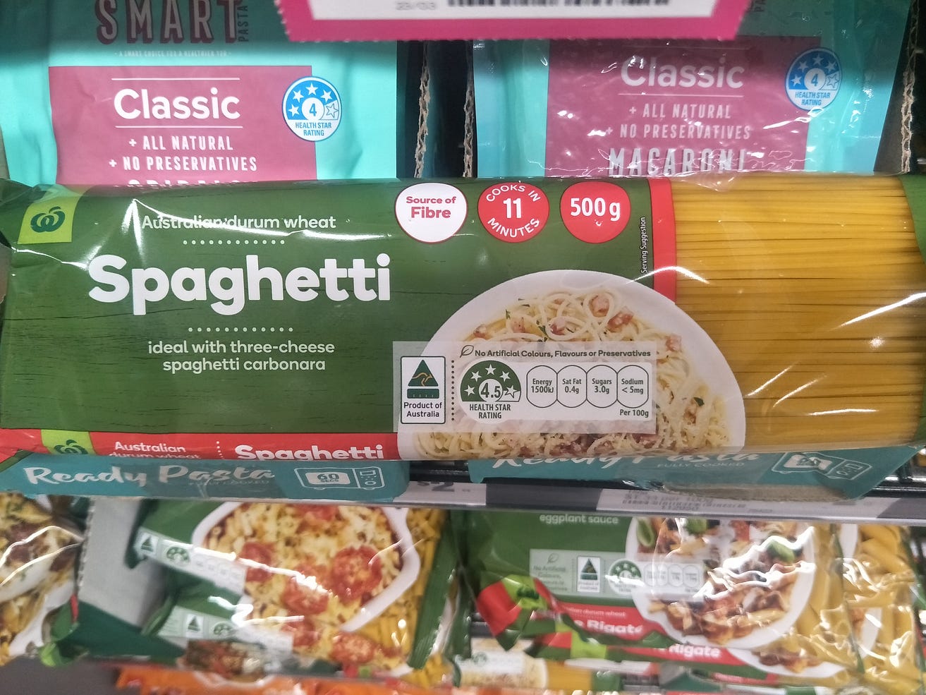 For a product thats just one ingredient what you pay for it can vary widely. Cereals and potatoes Cereals Nutrion Facts. Woolworths Pasta Spaghetti 500g Woolworths Pasta Spaghetti 500g.