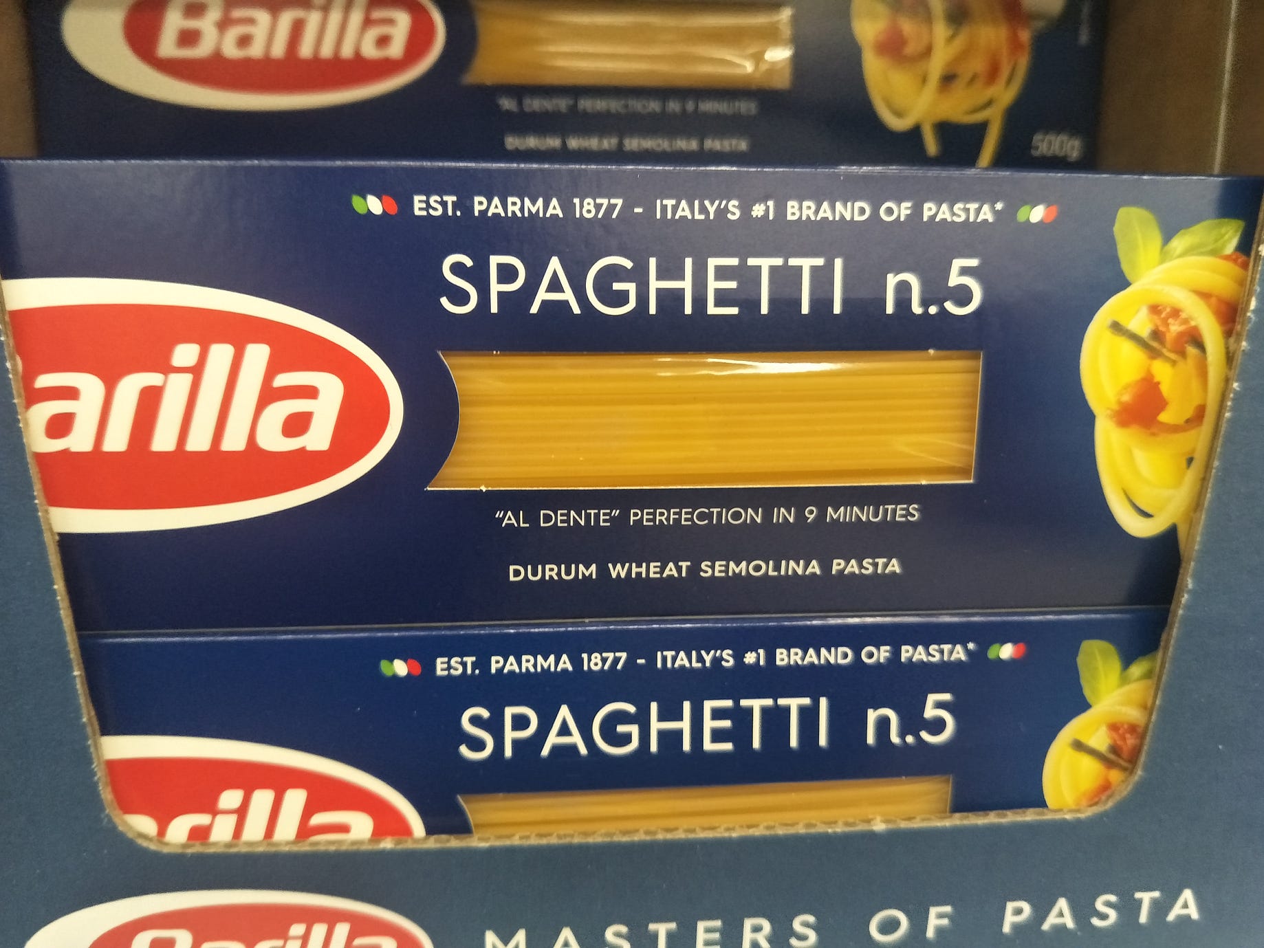 Save to list Barilla Spaghetti Pasta No 5 500g Barilla Spaghetti Pasta No 5 500g 2. 048 100G. Figures relate to uncooked dry pasta.